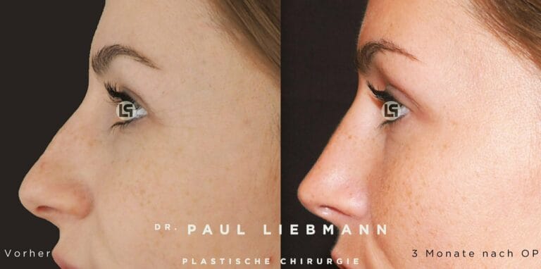 Hier sehen Sie Beispiele von Ergebnissen einer Nasenkorrektur. Alle Operationen wurden von Dr. Paul Liebmann durchgeführt. Restschwellungen klingen im weiteren postoperativen Verlauf ab.